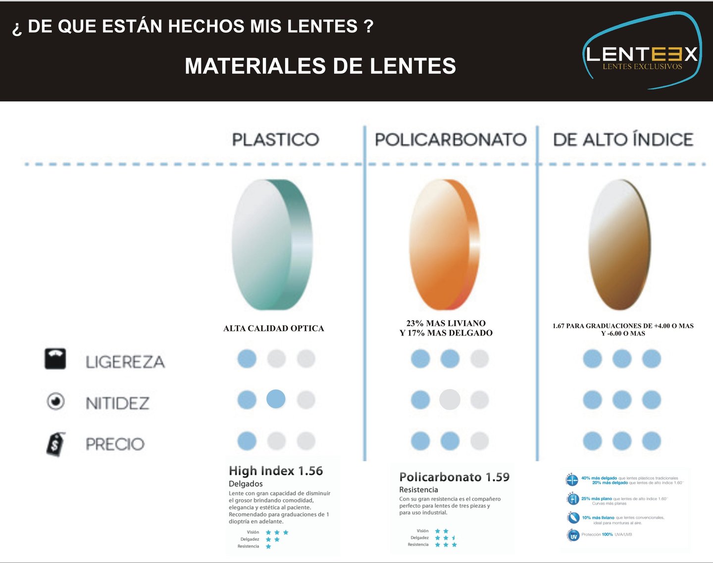 Cada uno de estos materiales tiene sus propias ventajas y características, por lo que es importante considerar las necesidades y recomendaciones del optometrista al momento de elegir.